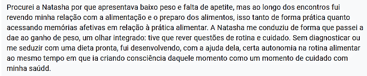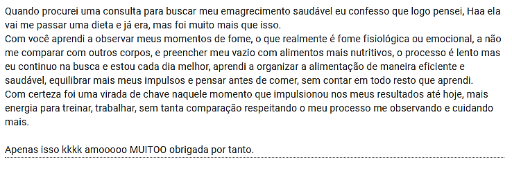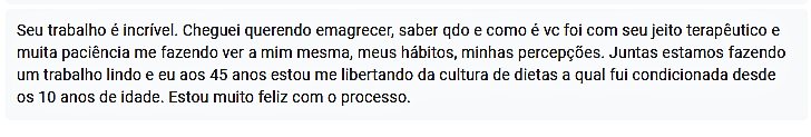 Já trabalhei com cirurgia bariátrica e realizei mais de 500 atendimentos, ajudando mulheres à viver em paz com a comida e o corpo!