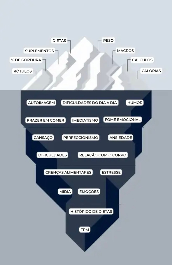 Ou seja: as pessoas recuperam o peso perdido, isso porque elas ignoram a parte debaixo do iceberg.