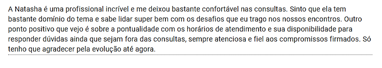 Me chamo Natasha Malinoski, tenho 31 anos, sou formada em Nutrição com especialização em Comportamento Alimentar.